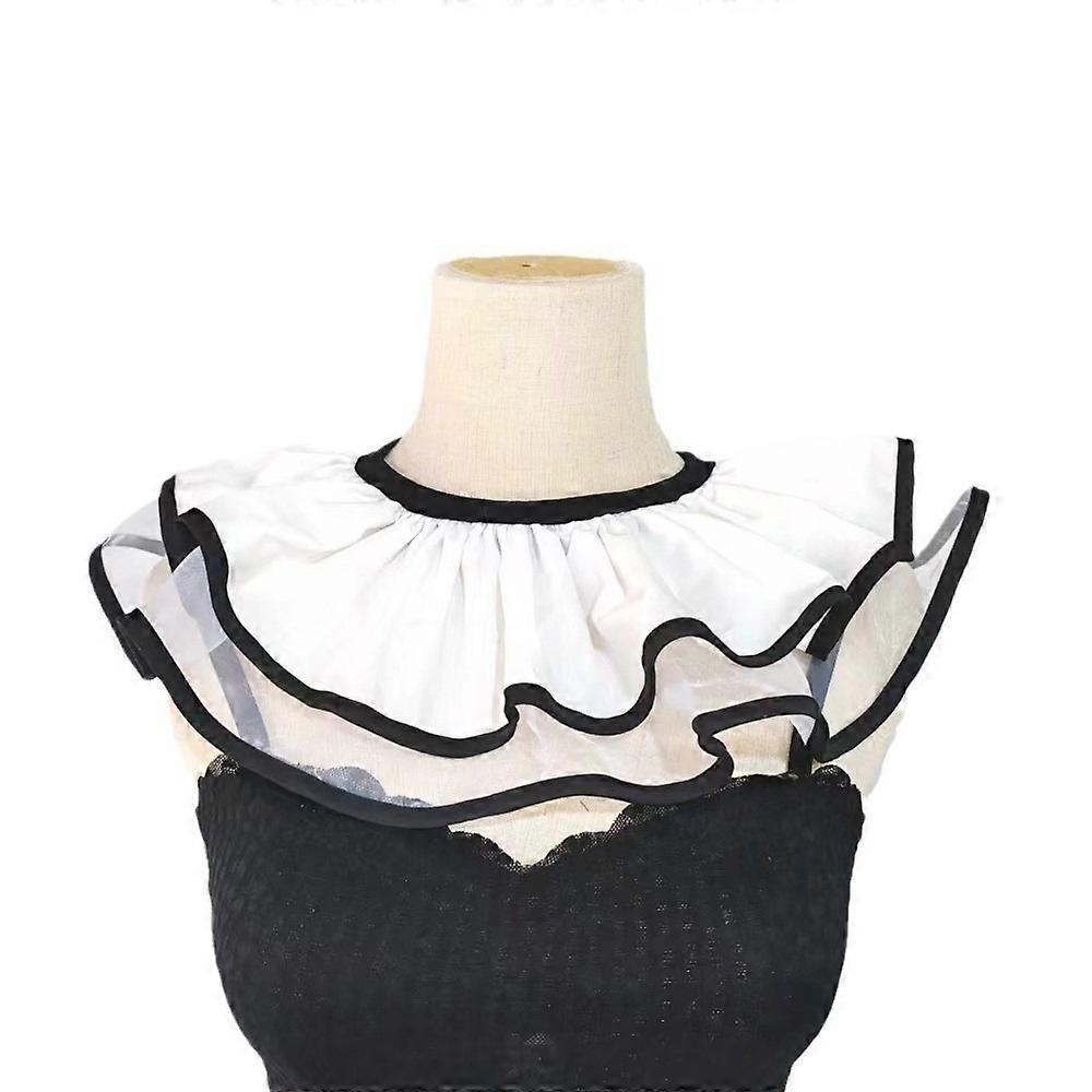 Lolita Retro Style Lolita Fake Collar Black White Pleated Design Neck Ruff Detachable Double Layer Lapel Cape Costume Party