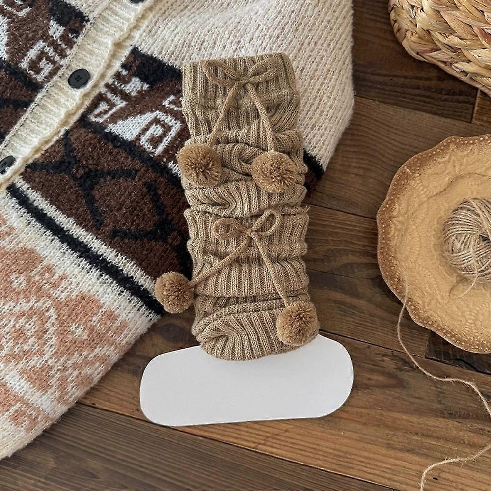 New Solid Color Leg Warmers Knitted Bow Thickened Middle Tube Socks Harajuku Boot Covers Gift