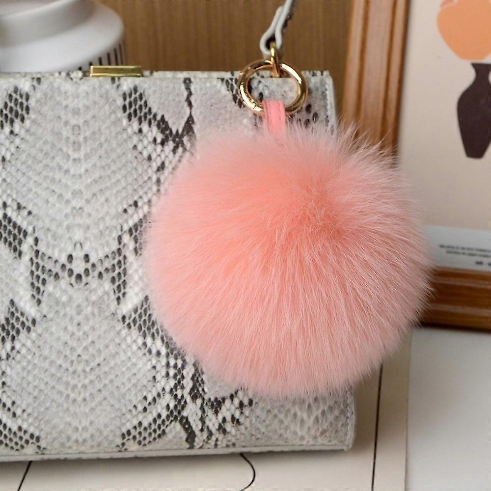 Trendy Hairball Keychain 10cm Metal Ring Pendant Bag Charm Fluffy Fur Pom Pom Keychain Fluffy Real Fox Pendant Women