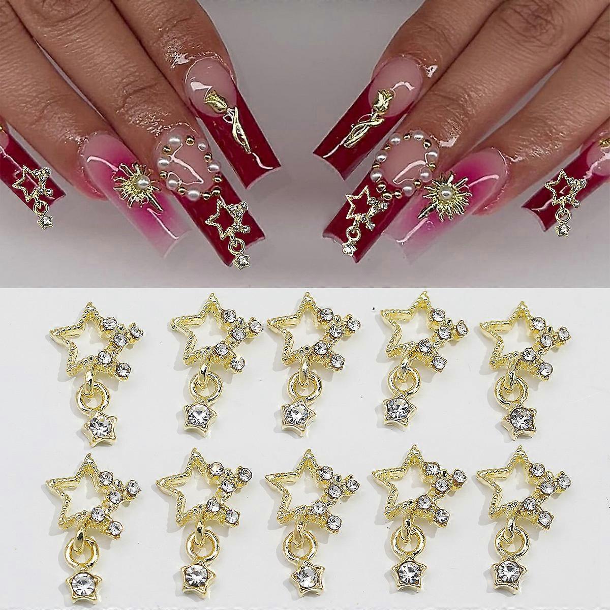 3D Exquisite Heart Crown Five-pointed Rhinestones Nail Charms Luxury Gold/Silver Diamond Jewelry Nail Decoration Accessories