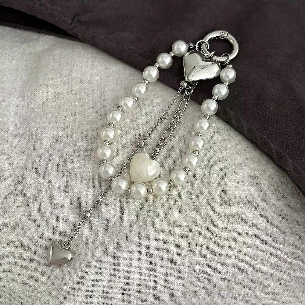 Elegant Metal Pearl Beaded Keychain Peach Heart Shape Tassel Decoration Pendant Jewelry Tassel Keychain Gifts