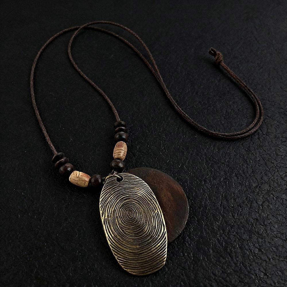 Vintage Boho Sweater Chain Leather Chain Hollow Leaves Wooden Pendant Necklace Handmade Long Collar Decoration for Women Men
