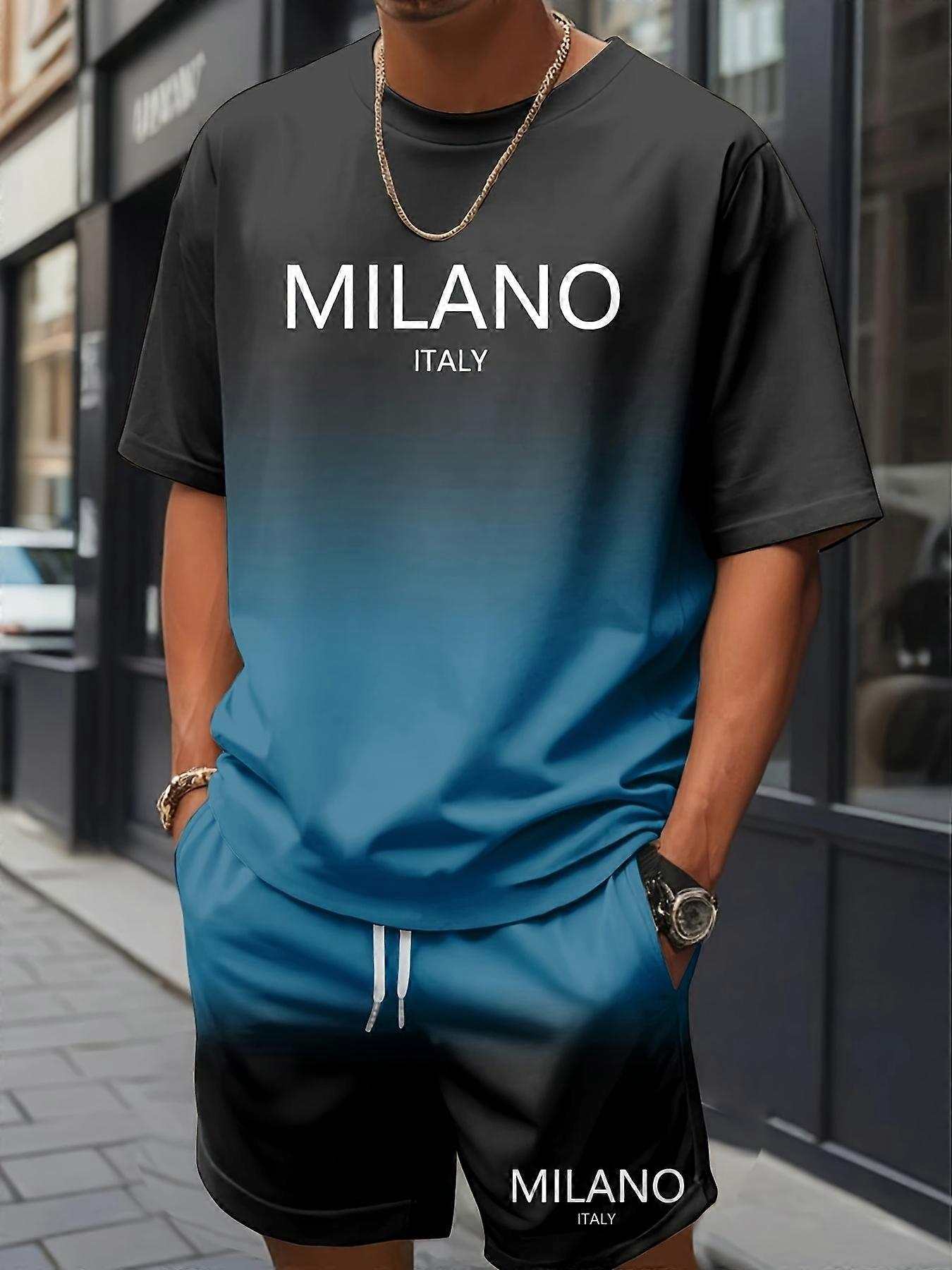 Summer 2025 new men's suit with letter prints, casual, fashionable, comfortable and soft polyester men's wear