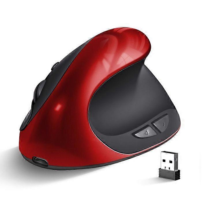 2.4GHz Silent Ergonomic Wireless Mouse, Rechargeable, Vertical, 1600 DPI, for Laptop, Red