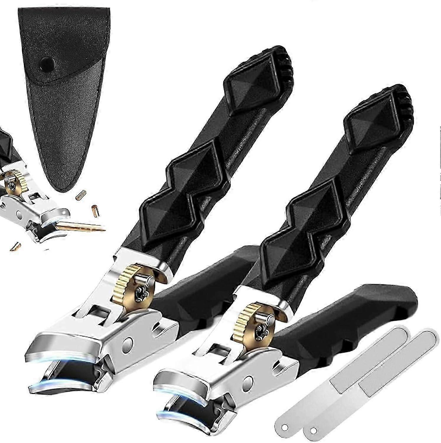Heavy Duty Toenail Clippers for Thick Nails, Wide Jaw & Splash Guard, 2-Pack Stainless Steel
