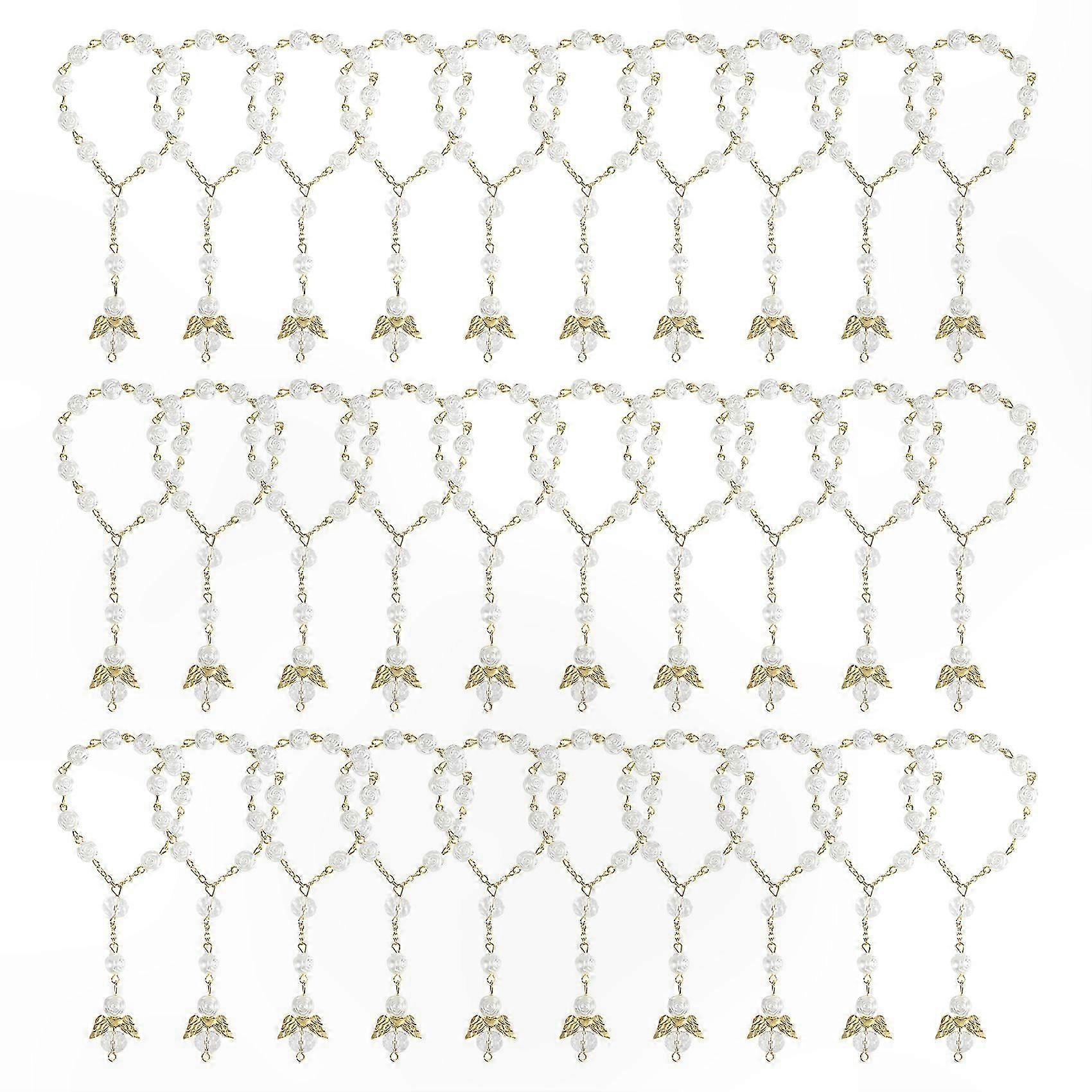 30 Pack Mini Acrylic Beads Rosaries for Baptism with Angel Design