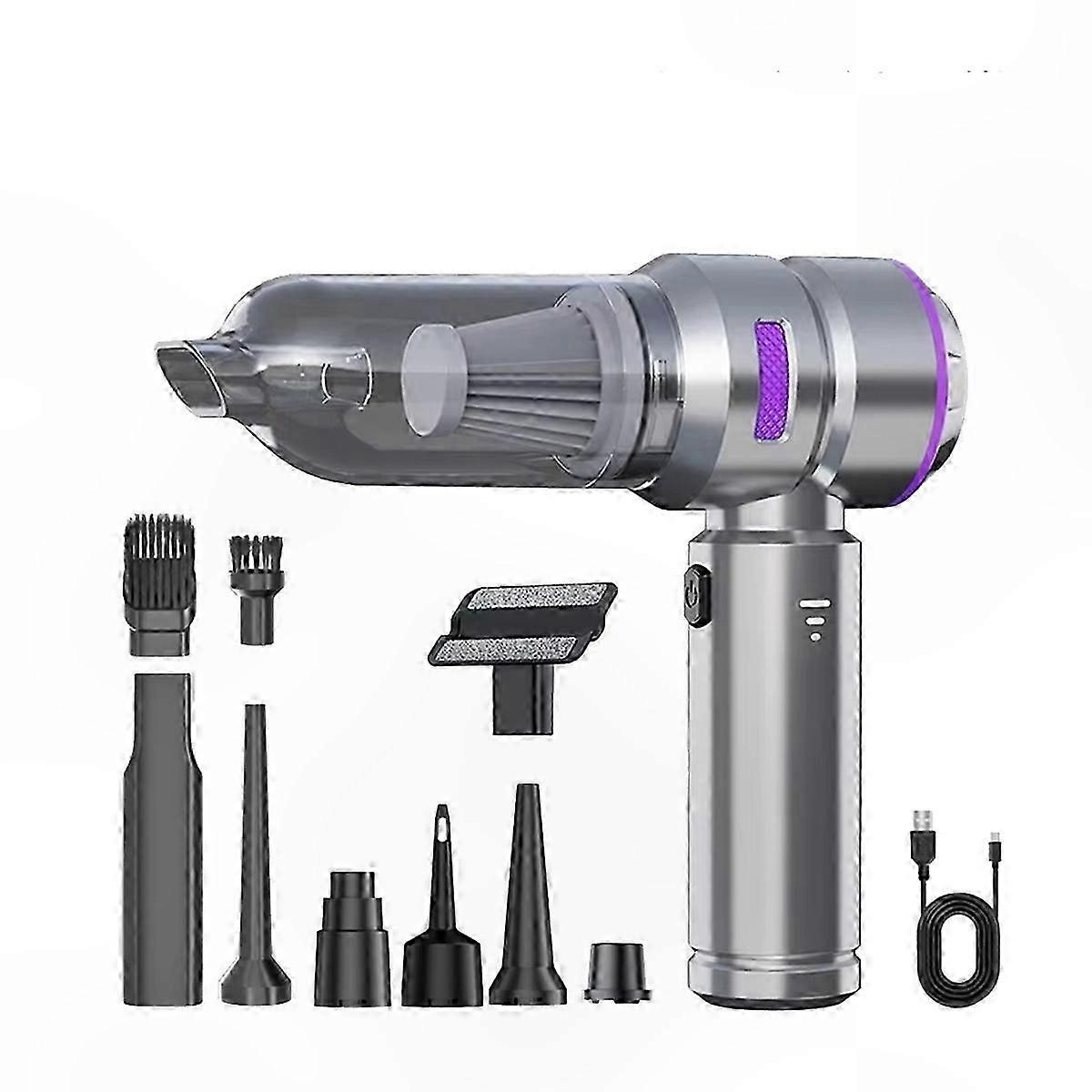 Portable Vacuum Cleaner for Car and Home Use Silver Air Duster with Motor Cleaning Function