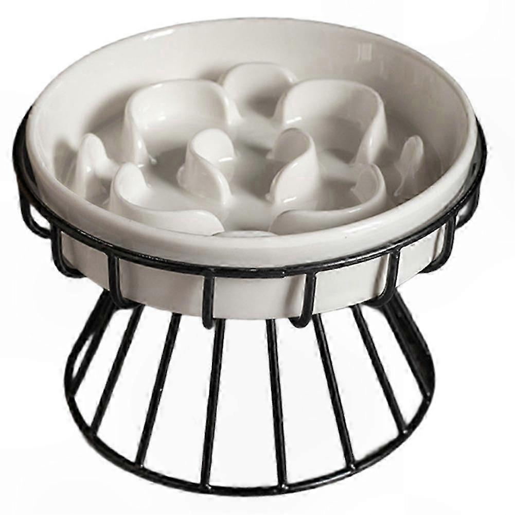 Effective Slow-Down Eating Design: Raised ridges help slow your cat’s eating pace by up to 3 times, supporting healthier digestion and reducing risks associated with rapid eating, such as bloating, regurgitation, and weight gain. Thoughtful spacing between ridges encourages a comfortable, natural eating rhythm.Premium Ceramic Construction: Made from food-grade ceramic, this bowl is non-toxic, durable, and heavy enough to stay stable during use—unlike lightweight or brittle alternatives.Non-Slip, Mess-Resistant Base: A sturdy 3.54-inch metal base combined with a heavy-duty ceramic food plate minimizes sliding and prevents wet food from being flicked out, helping keep floors clean.Elegant & Functional Design: A white ceramic bowl with flower-shaped raised edges and a grid-patterned feeding surface adds visual appeal while enhancing usability.Ergonomic Height: The 5.9-inch-wide bowl features a raised design that promotes a more natural head and neck position, offering comfort for cats—and small dogs—with mobility concerns.Color: As shown Material: Ceramic + Iron Package Includes: 1 stand, 1 bowl