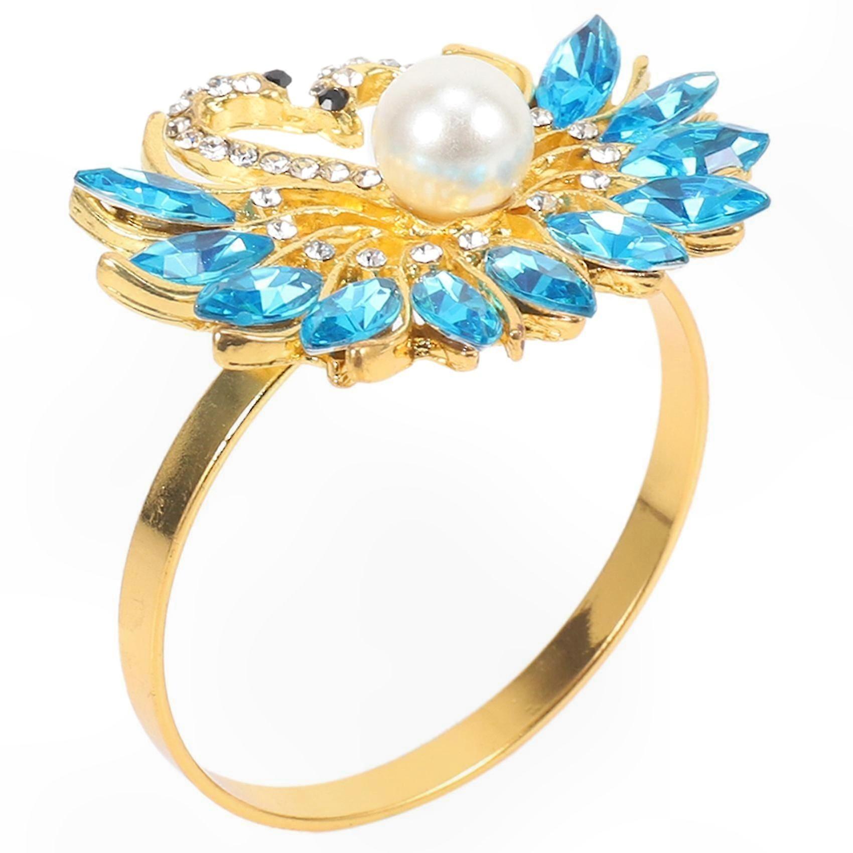 Blue Napkin Ring Set of 6, Elegant Swan Design with Rhinestone Accents, Perfect for Table Decor and Special Ocns