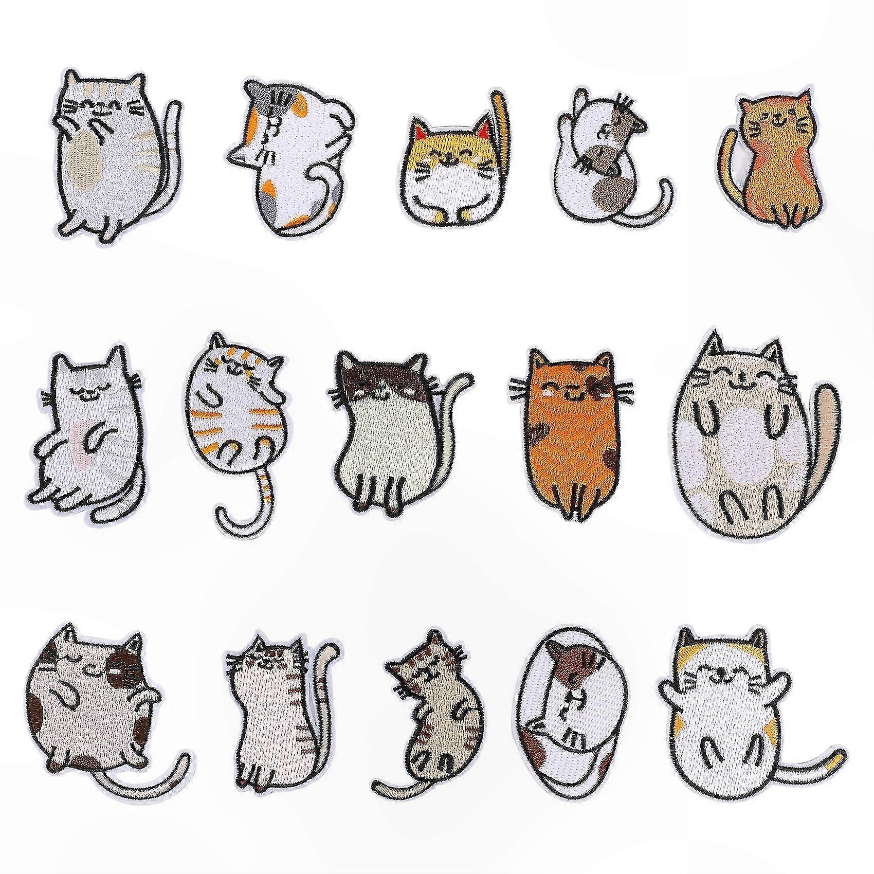 15PCS Cute Cat Embroidered Patches, Iron-On Applique for Jeans Jackets DIY Sewing Accessory Decoration