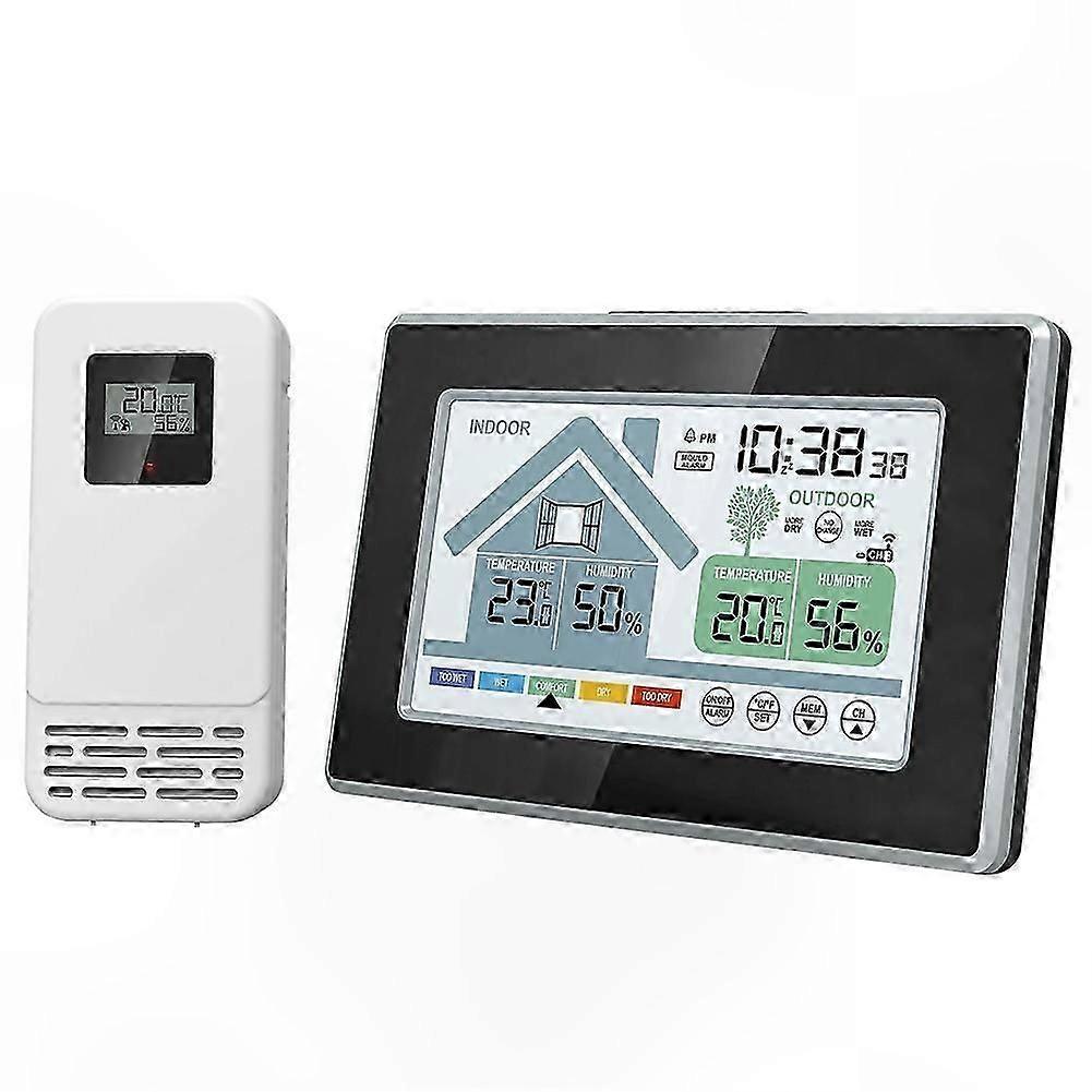 Digital Weather Station with Touch Screen and Push Button for Indoor Outdoor Temperature Humidity Monitoring Mould Alert Clock