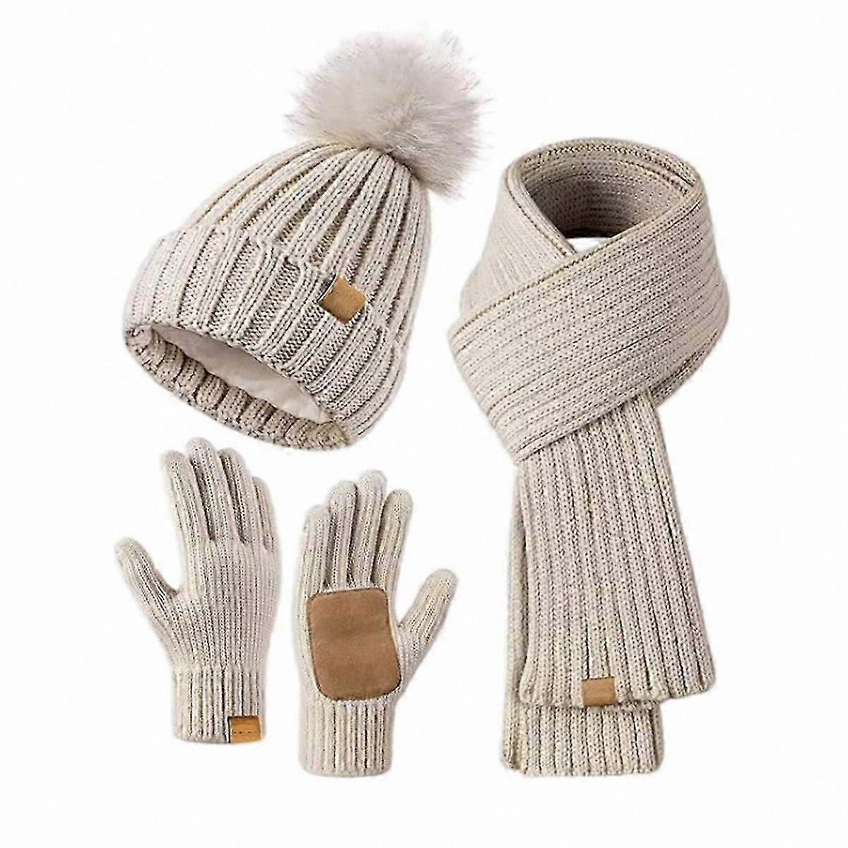 Women's Winter Hat Scarf Gloves Set with Pom Pom Beanie
