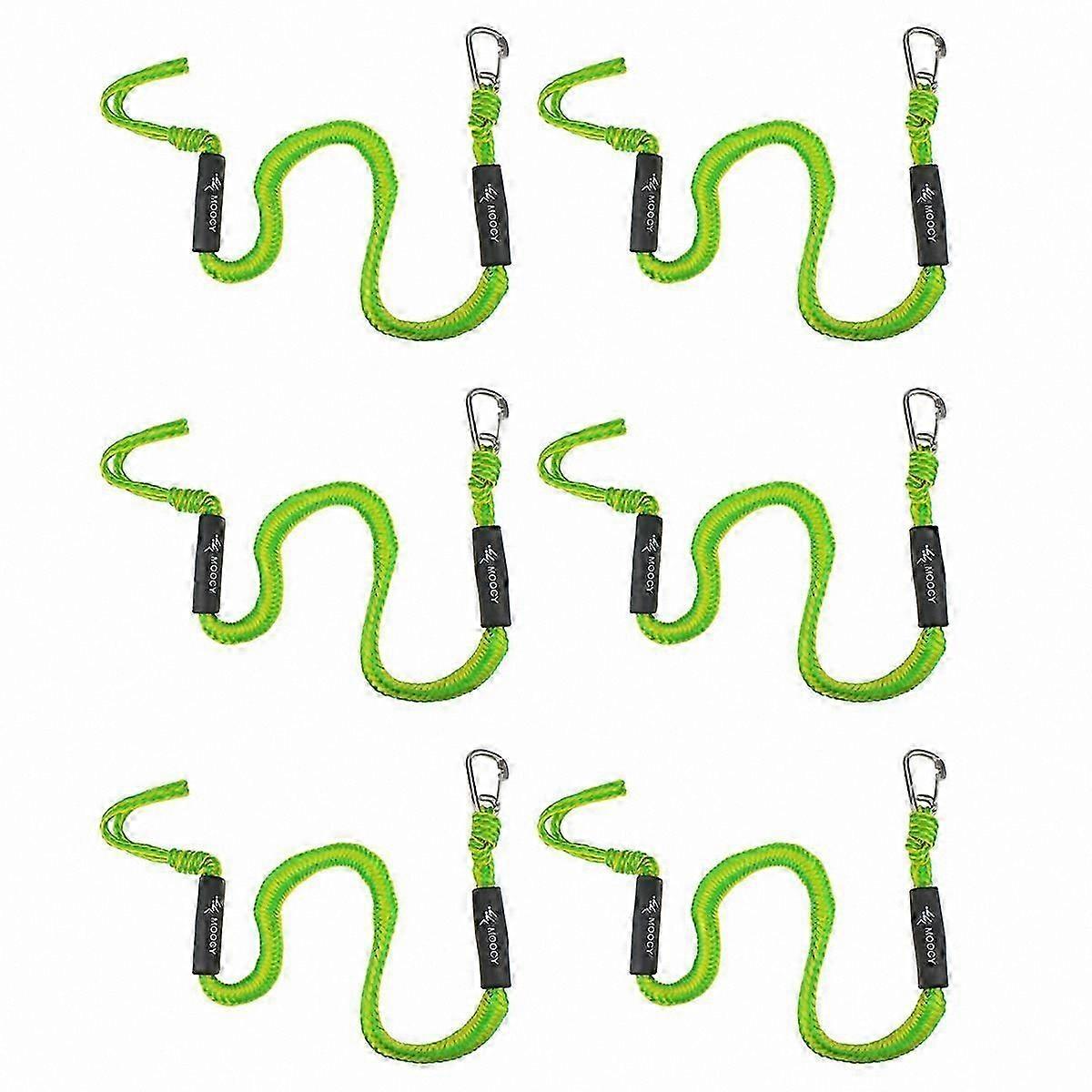 The jerking and tugging on your docked boat caused by standard dock lines. Features a loop and clip at each end for easy attachment and quick docking. The bungee cord is concealed inside the rope and functions as an integrated shock absorber. Two EVA foam floats help prevent chafing. Bungee Dock Line: 3.93 ft (120 cm) unstretched, extends to 5.08 ft (155 cm). Breaking strength: 1000 kg (2200 lbs). Color: green. Material: polyethylene. Package includes: 6 x dock lines. Other items shown are not included. Note: Lighting conditions and screen settings may cause slight color variation between the image and the actual product. Measurement tolerance: ±1–3 cm.