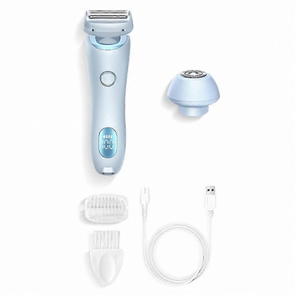 Effortless Shaving Experience: The electric shaver ensures a smooth, close shave without irritating the skin, making it ideal for sensitive skin. Versatile Design: This electric shaver features a three-blade system, including straight blades for arms and legs, curved blades for underarms and the bikini area, and 3D floating foils for precise trimming of short hairs and stubble. Long-lasting and Portable: This shaver provides 20–30 minutes of runtime on a single charge, making it suitable for travel and daily use. Its compact design and detachable heads fit easily into most bags or pouches. Gentle on the Skin: Designed for sensitive areas, the shaver delivers a fast, close shave without nicks or cuts. It is suitable for use on the face and body for a comfortable grooming experience. Easy Cleaning and Waterproof: The shaver has a detachable head that can be rinsed under running water, supporting both wet and dry use. A digital display shows battery status for added convenience. Product Power: 5 W Input Voltage: 3.7 V Charging Method: USB Product Dimensions: 165 × 50 × 33 mm Color: Blue Material: ABS + Metal Package Contents: 1 × Shaver Unit 2 × Replacement Blades 1 × Charging Cable 1 × Dust Cover 1 × Cleaning Brush Note: Due to variations in lighting, screen settings, and manufacturing batches, the actual product color and appearance may differ slightly from images shown. Slight dimensional variations of ±1–3 cm may occur.