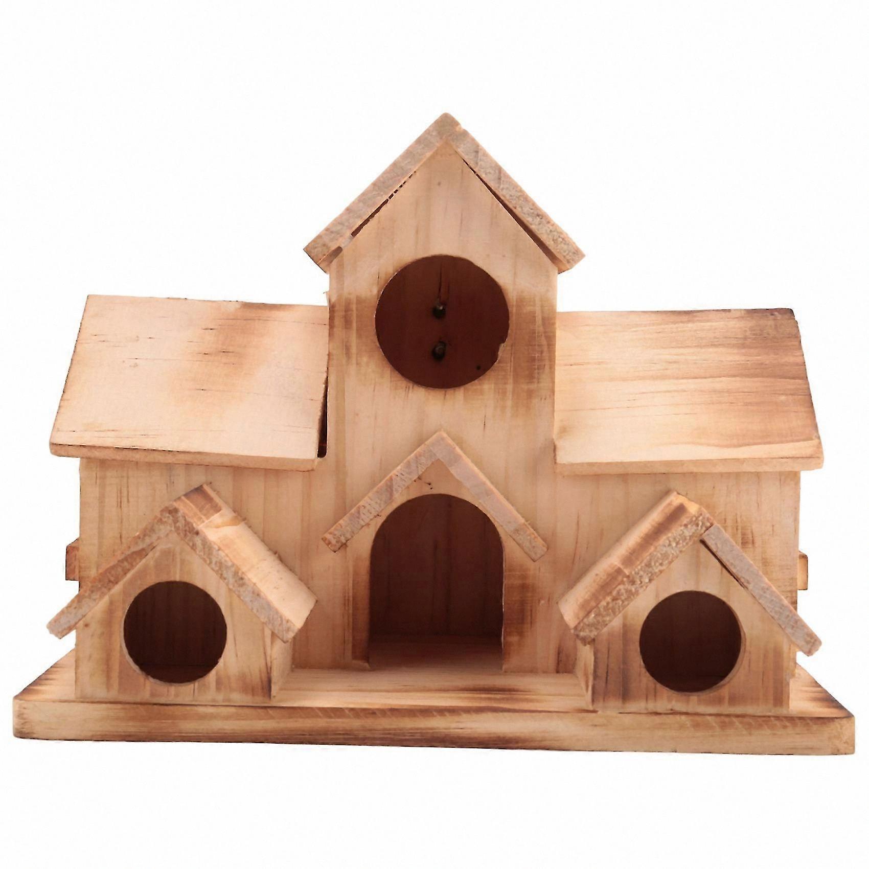 Wooden Bird House with 6 Holes, Handmade Natural Outdoor Hanging Birdhouse