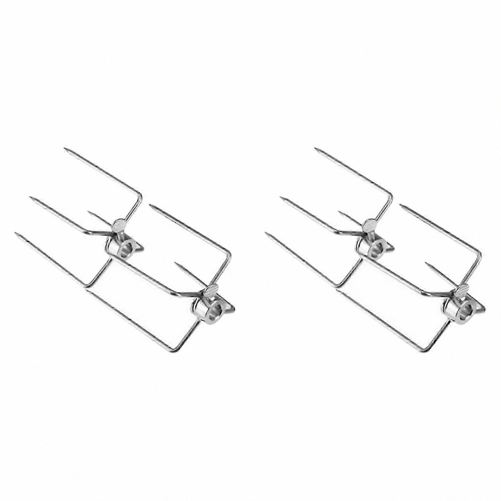 4PCS Stainless Steel BBQ Rotisserie Forks Grill Skewers Meat Clamps