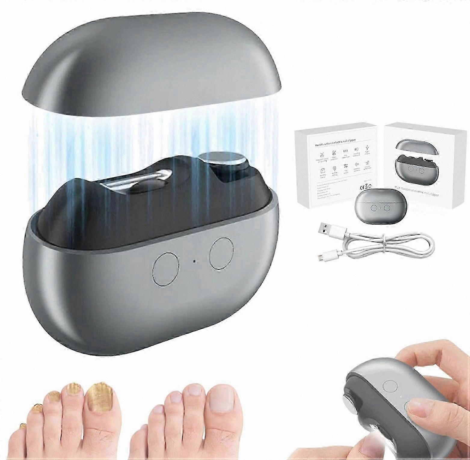 Easy Clip Nail Clippers — Grey A compact, rechargeable nail trimmer designed for safe, comfortable, and precise clipping. The curved-head cutter and rounded blade reduce the risk of cutting too close while adapting to a wide range of nail shapes and thicknesses. Built-in LED lighting and one-touch operation make nail care easier for people with limited hand mobility or those who prefer simple, reliable tools. Key benefits Effortless one-touch operation for quick, controlled trimming without complex controls. Curved-head design follows natural nail contours for cleaner cuts on fingernails and toenails. Rounded blade and ergonomic shape help reduce accidental nicks and overcuts. Two polishing heads provide a smooth, finished surface after trimming. Built-in LED light improves visibility for accurate trimming in low-light situations. Rechargeable USB-C battery (300 mAh) delivers long run time and convenient charging. Features Curved-head blade tailored to fit different nail widths and thicknesses. Two interchangeable polishing heads for shaping and smoothing. Integrated LED light for clearer visibility. USB-C charging port for fast, universal charging. Compact and lightweight for easy handling and storage. Specifications Product name: Easy Clip Nail Clippers Color: Grey Battery capacity: 300 mAh Rated voltage: 5 V Charging port: USB-C Dimensions: 86 x 59 x 30 mm (3.4 x 2.3 x 1.2 in) Packaging dimensions: 111 x 99 x 36 mm (4.4 x 3.9 x 1.4 in) Net weight: 112 g Packaging weight: 186 g Practical use scenarios At-home pedicure: Trim and polish thick toenails safely with the curved-head blade and polishing attachments. Travel grooming: Compact size and USB-C charging make it easy to pack and use on the go. Assisted care: Simple one-touch operation and improved visibility help caregivers perform routine nail maintenance with greater control. What sets it apart Combines a shape-adaptive blade, built-in lighting, and finishing heads in a single, portable trimmer. Rechargeable battery and USB-C charging eliminate the need for disposable batteries. Designed for users who need straightforward, reliable nail care tools without complicated setup.
