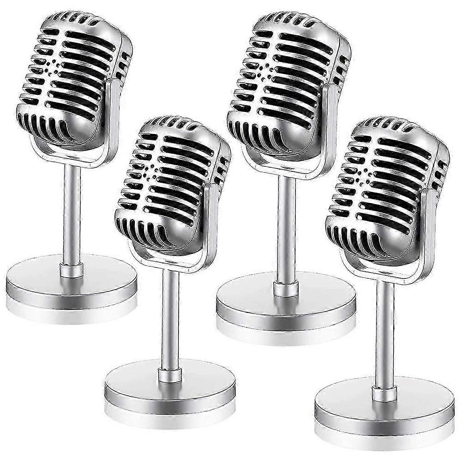 4Pcs Retro Microphone Props Model Vintage Microphone Antique Microphone Toy Microphone Stage Table Decor,Silver SH