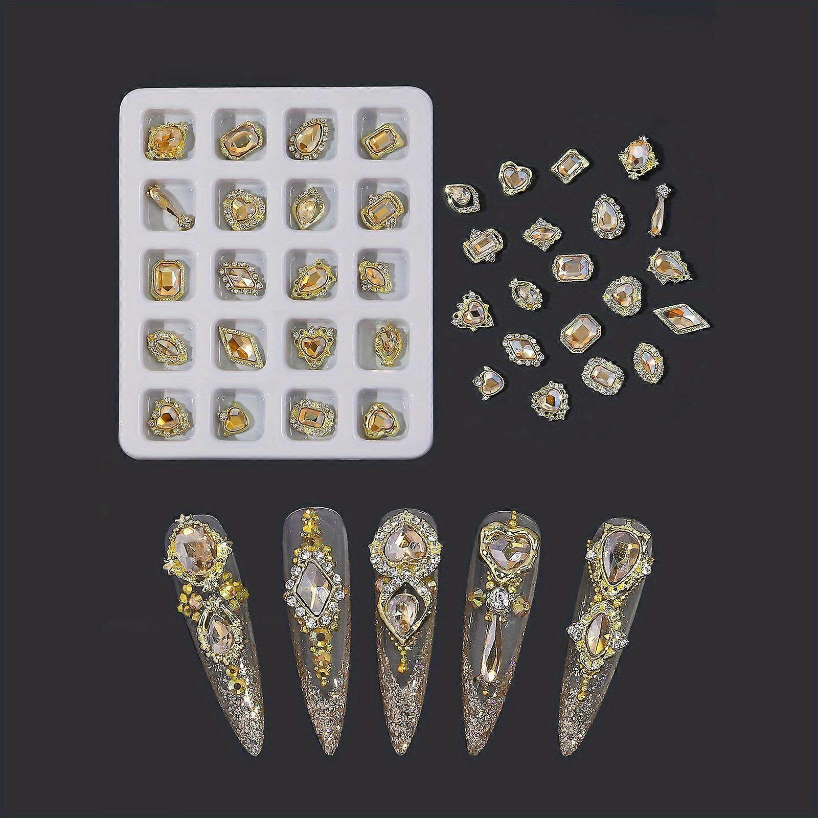 Elegant 3D Alloy Nail Art Charms with Crystal Rhinestones - Perfect for Nail Salon - Available in Golden, Pink, Green, and Blue