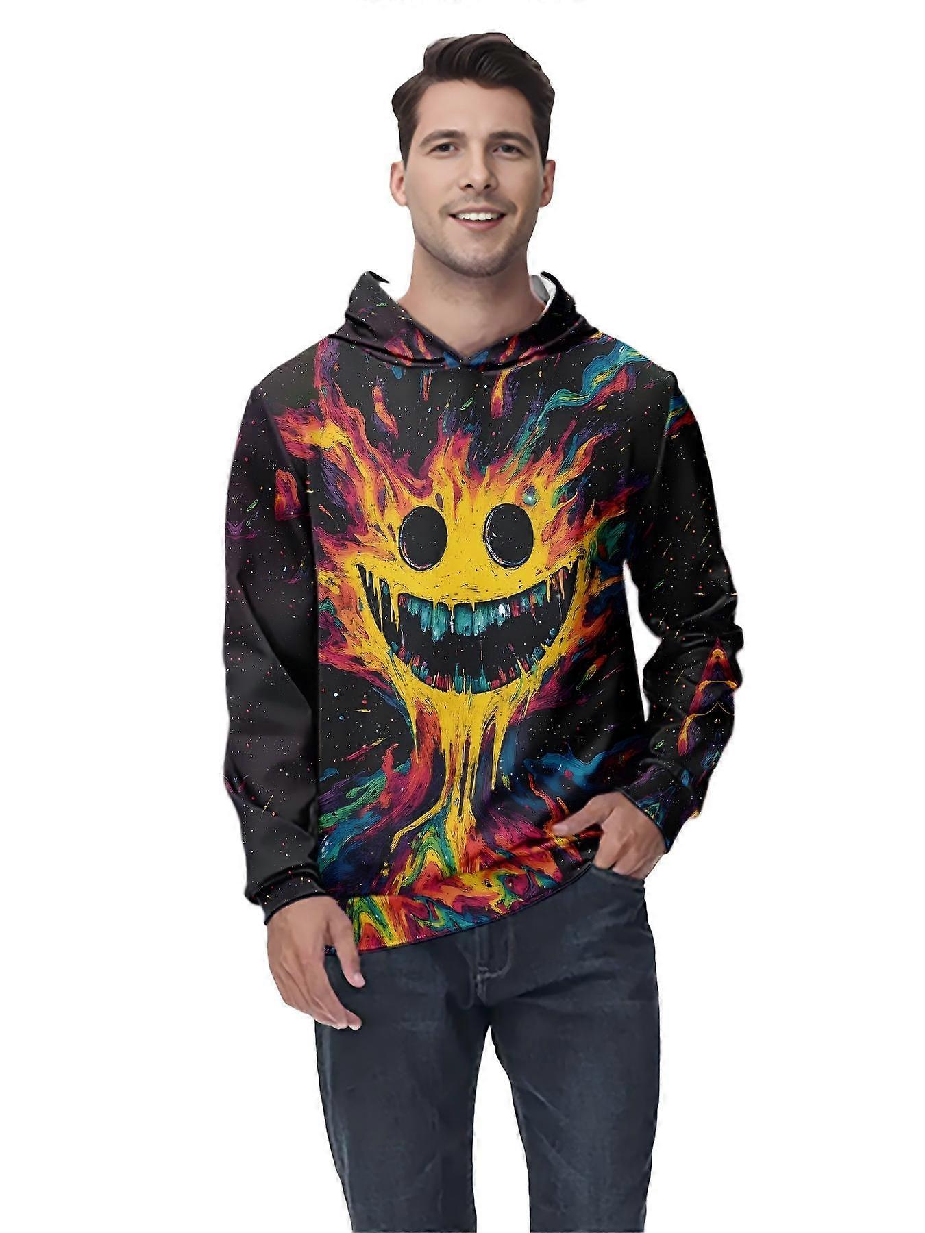 Men’s Vibrant Graphic Hoodie Psychedelic Smiley Print Casual Streetwear Pullover