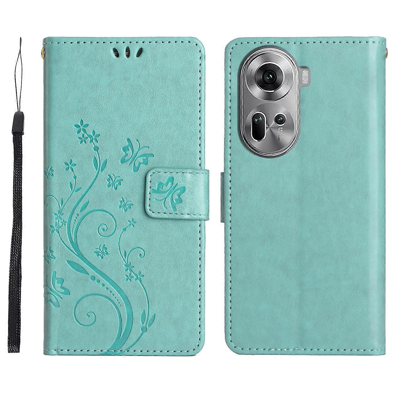 For Oppo Reno11 5G (Global) Wallet Case Butterfly Pattern PU Leather Phone Cover - Baby Blue