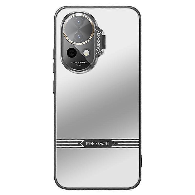 Kickstand Phone Case for Huawei nova 12 5G Matte PC+TPU Shell with Tempered Glass Lens Cover - Silve