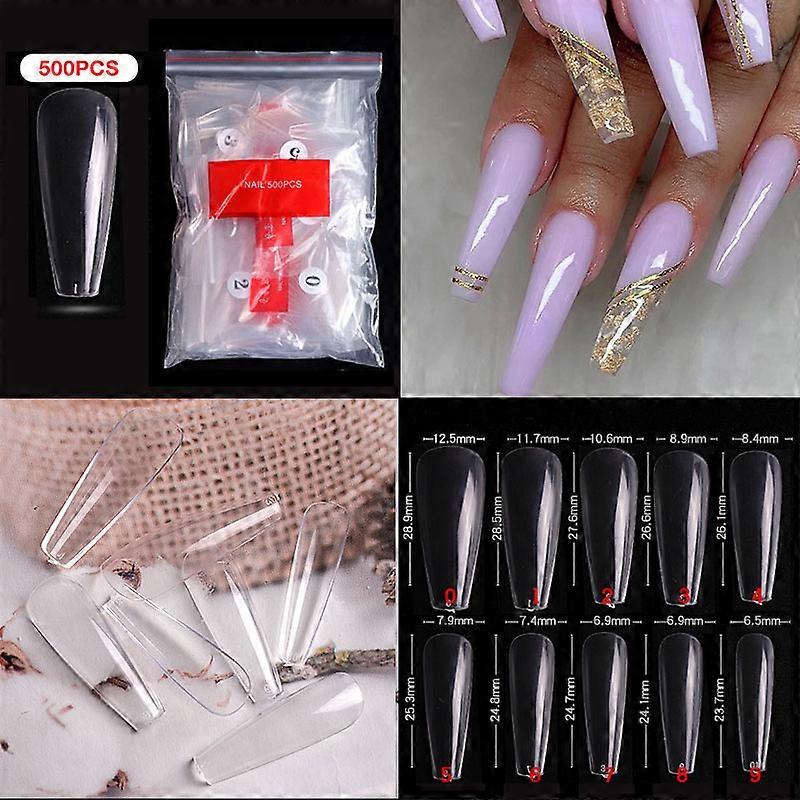 500pcs/bag Long Ballerina Nails Clear Natural Coffin False Nails Art Tips Ultra Flexible Fake Nails Full Cover Designs Manicure