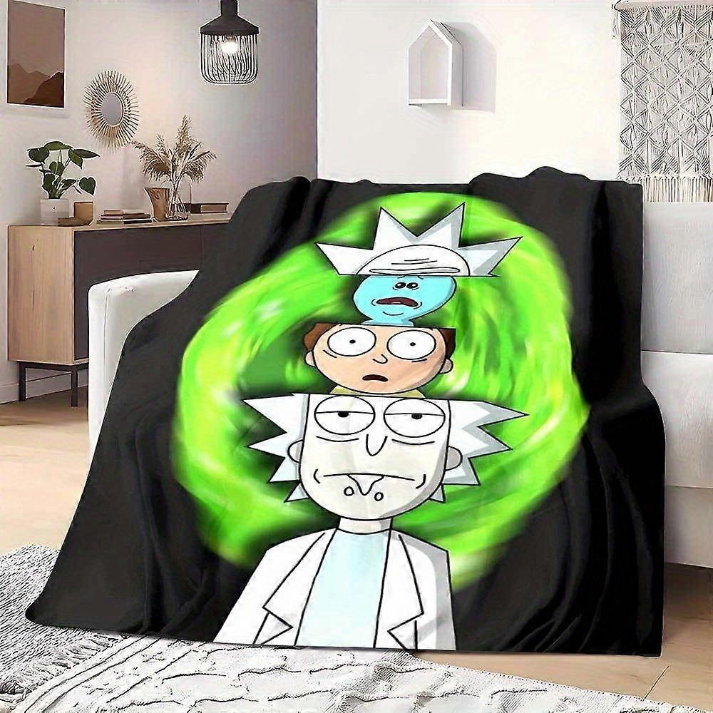 Rick and Morty Themed Flannel Blanket Soft Warm All Season Throw with Cartoon Characters Mixed Colors