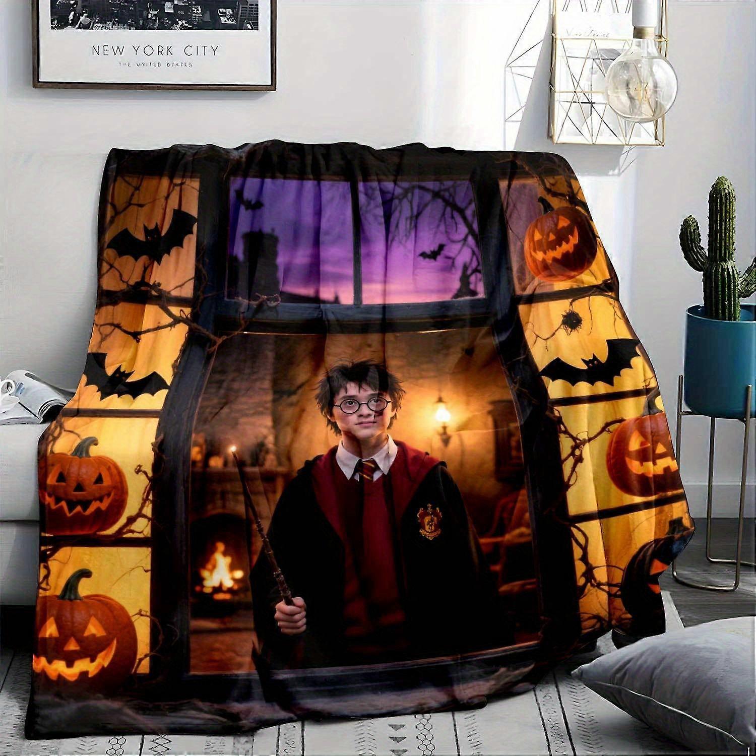 Harry Potter Themed Flannel Blanket Ultra Soft Warm All Season Throw with Vibrant Character & Pumpkin Patch Design Perfect for Halloween
