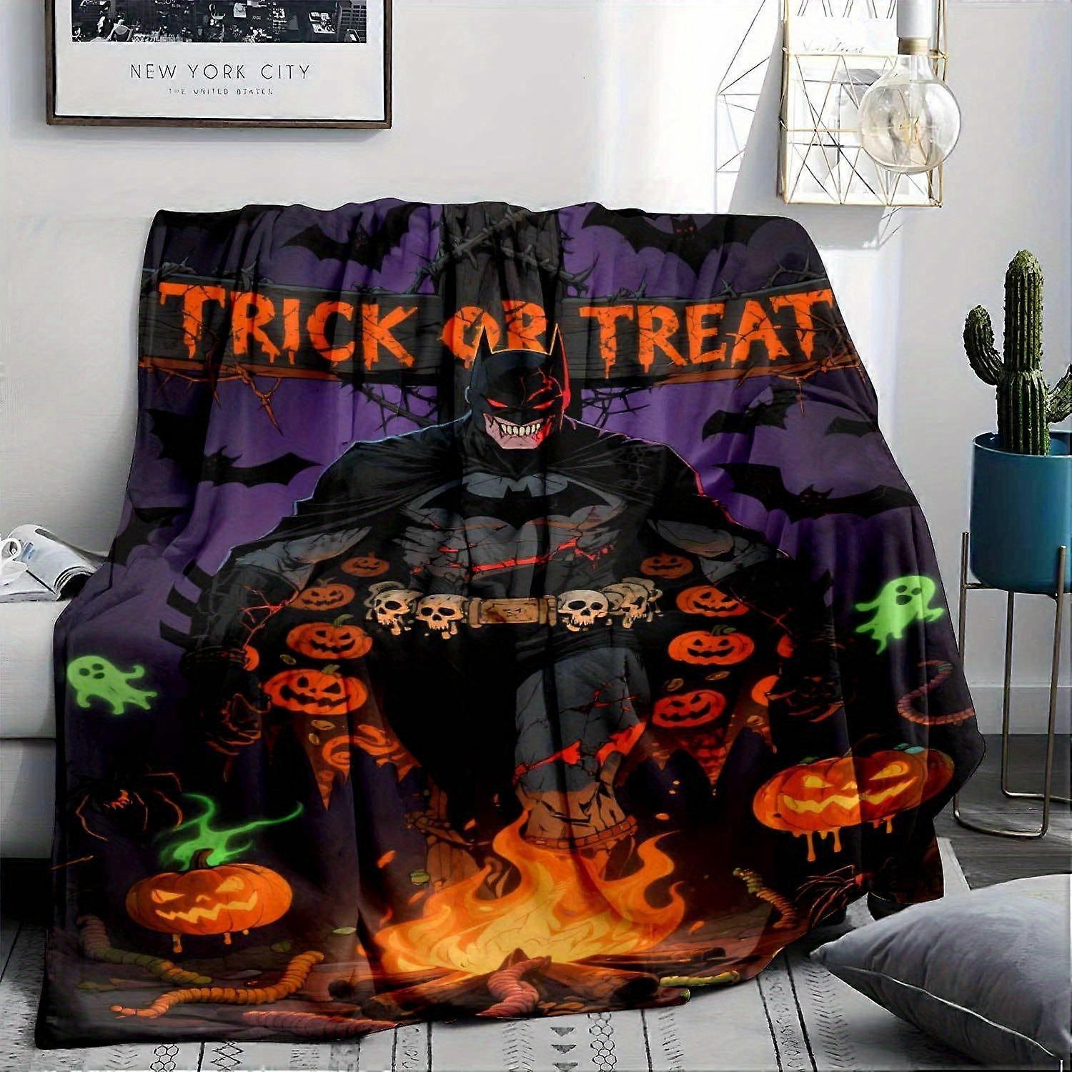 Batman Halloween Flannel Blanket Soft & Warm All Season Throw with Spooky Pumpkin & Bat Design Perfect for Sofa