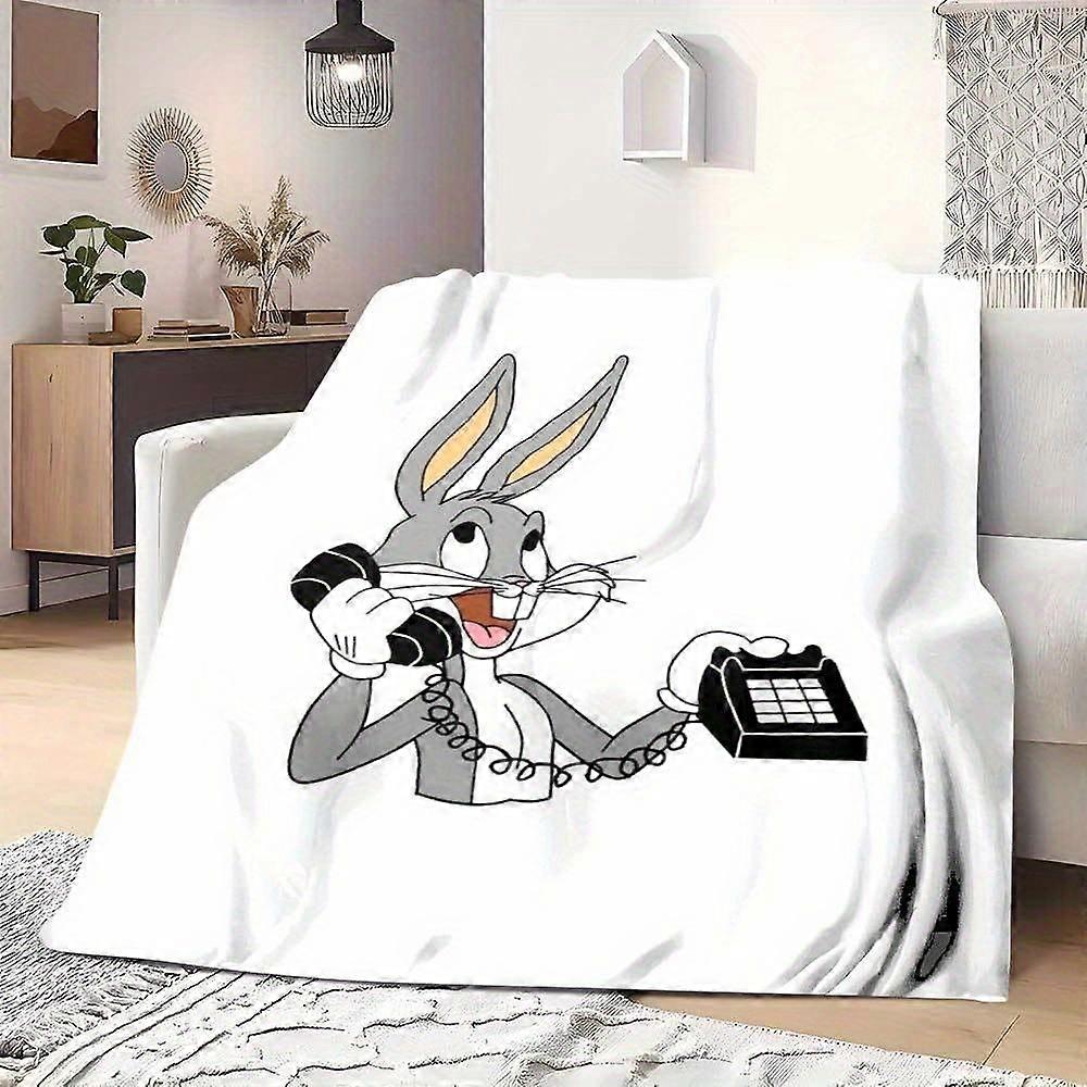 Bugs Bunny Flannel Blanket Soft All Season Throw with Vintage Rotary Phone Design Lightweight & Cozy for Sofa