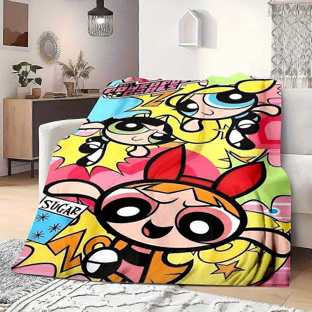 Powerpuff Girls Flannel Blanket Ultra Soft Warm All Season Throw with Blossom Buttercup & Bubbles Cartoon Design
