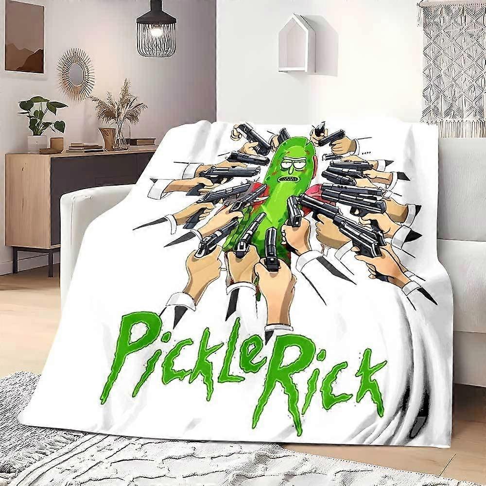 Rick and Morty Pickle Rick Graphic Flannel Blanket Soft All Season Throw with Cartoon Design Mixed Colors for Sofa