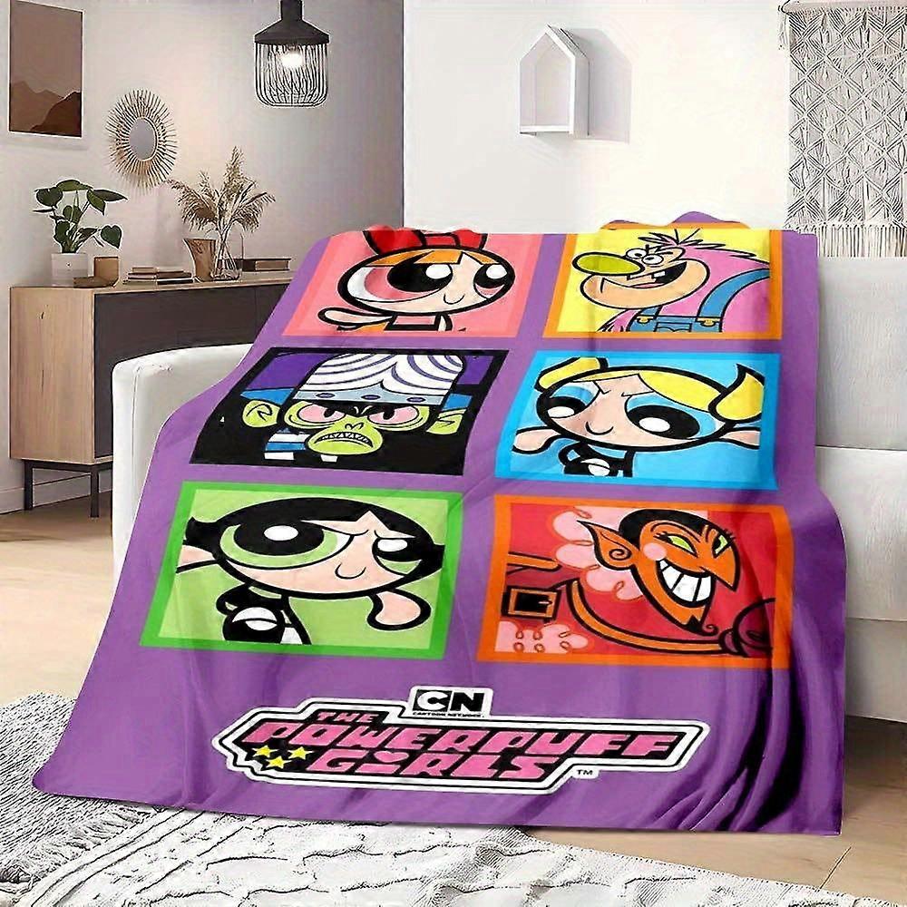 WB Powerpuff Girls Nostalgic Bedspread/Throw Blanket Soft Warm Flannel with Buttercup & Bubbles All Season Couch