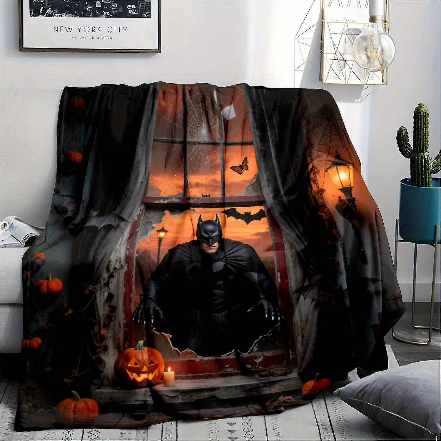 WB Flannel Blanket Ultra Soft Warm All Season Gotham City Skyline Design with Silhouette & Bats Cozy Superhero Bedding for Home