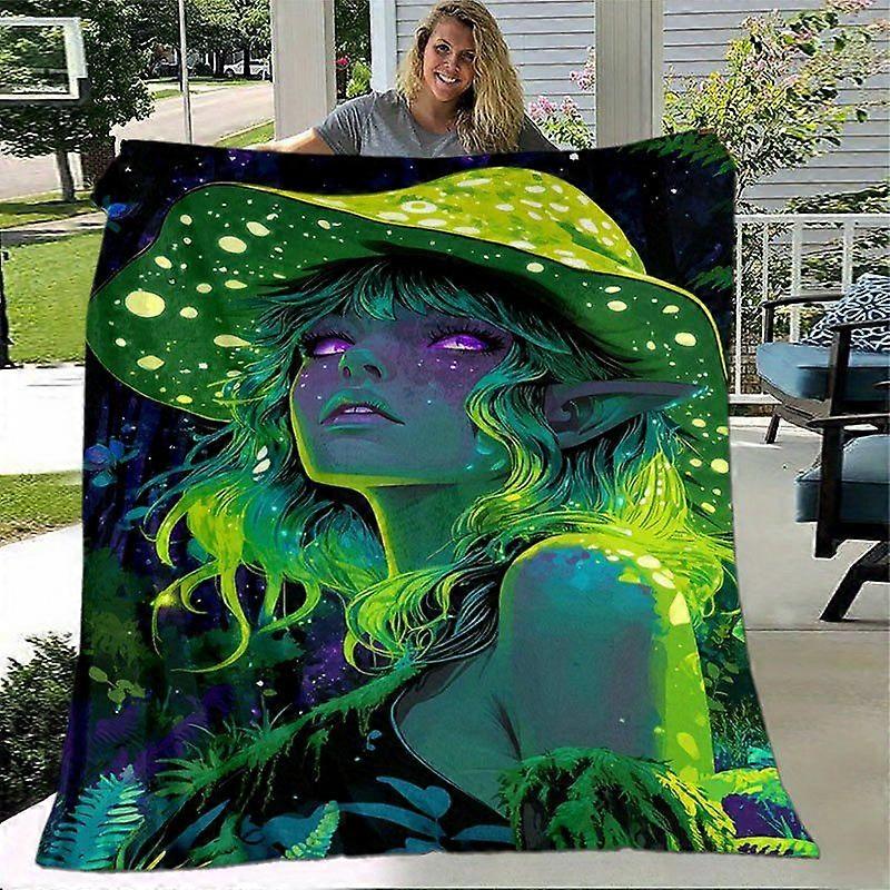 Elf Enchanted Forest Spirit Soft Flannel Blanket Retro Fantasy Throw with Magical Elf