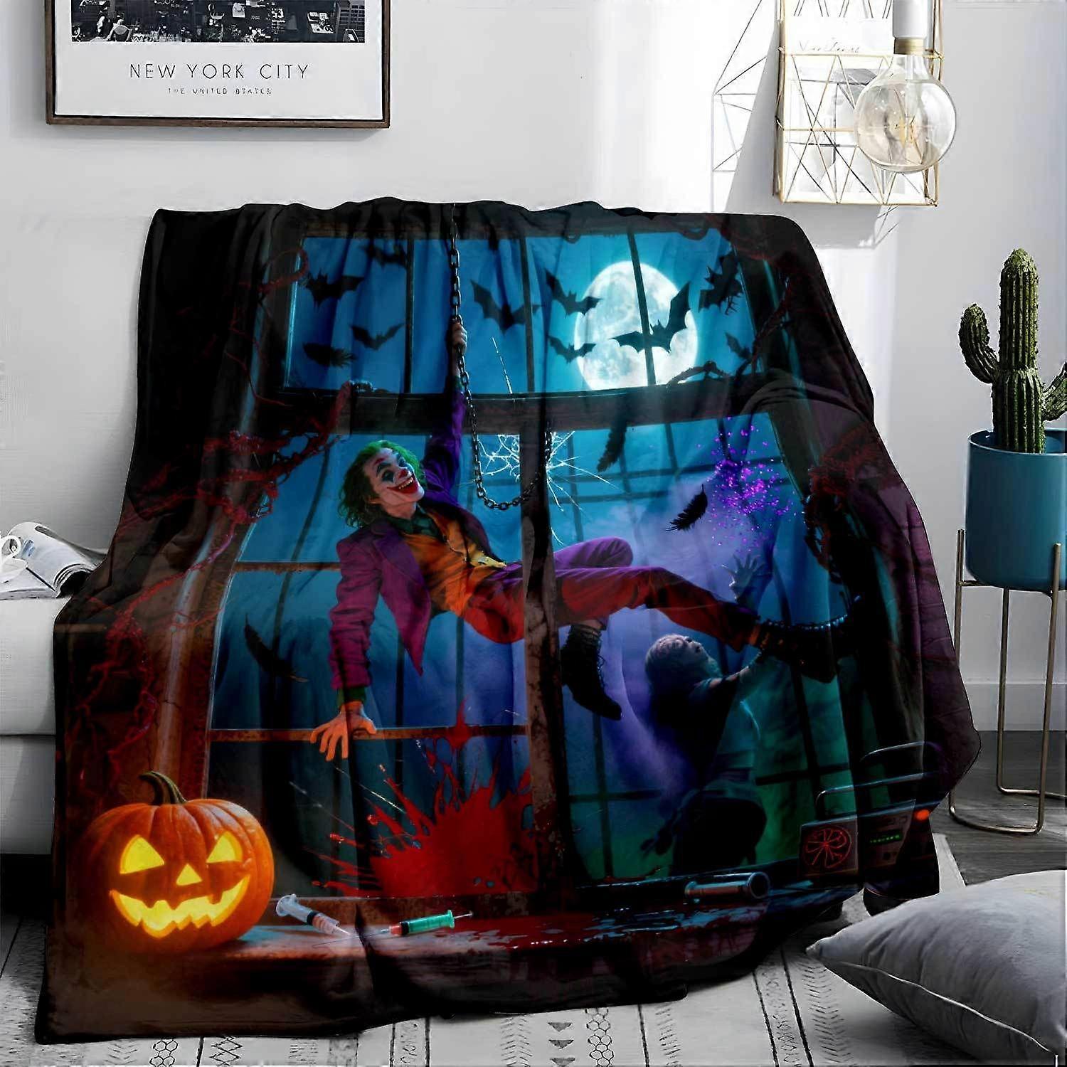 Joker Halloween Themed Flannel Blanket Cozy All Season Throw with Spooky Night Scene Design Perfect for Sofa