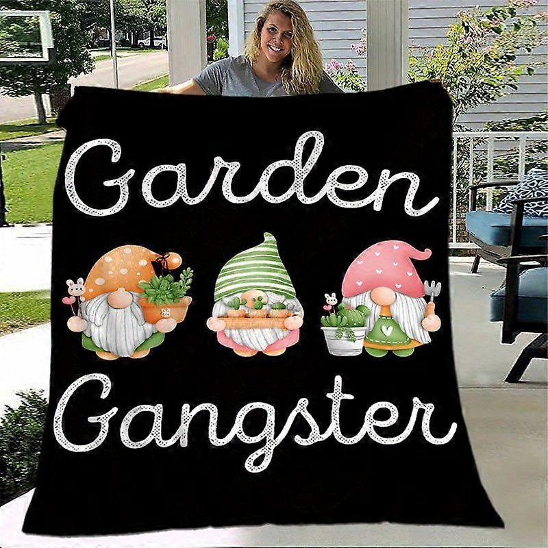 Vintage Gnome Garden Gangster Themed Black Flannel Blanket Soft All