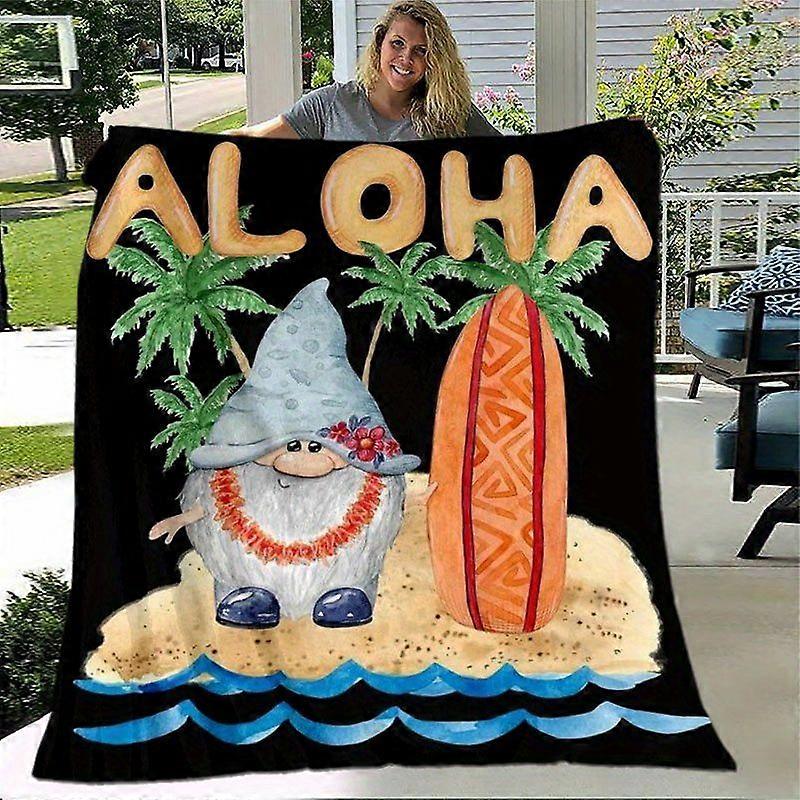 Gnome Themed Hawaiian Gnome Aloha Surfboard Palm Trees Soft Flannel Blanket Vibrant