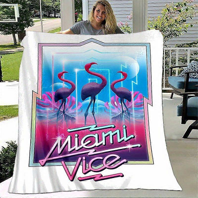Miami Vice Retro Flamingo Neon Blue & Pink Tropical Flannel Blanket Soft All