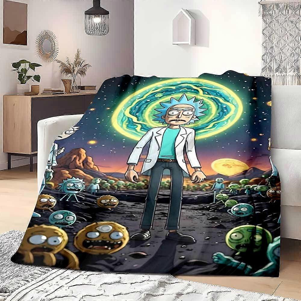 Rick and Morty Themed Flannel Blanket Soft Warm All Season Throw with Vibrant Cosmic Design Perfect for Sofa