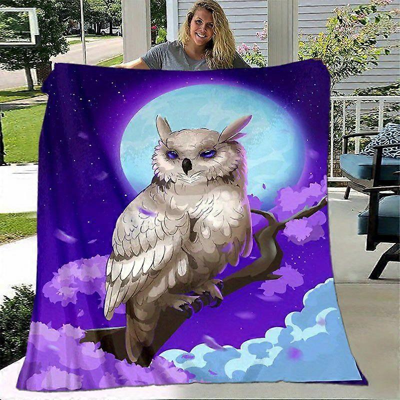 Vintage Night Owl Moonlit Sky Flannel Blanket Soft All