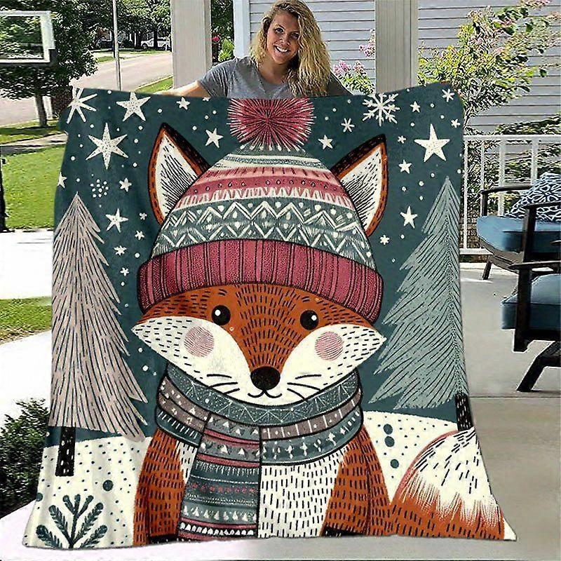 Christmas Winter Fox Snowy Forest Hat Scarf Stars Soft Flannel Blanket Vibrant