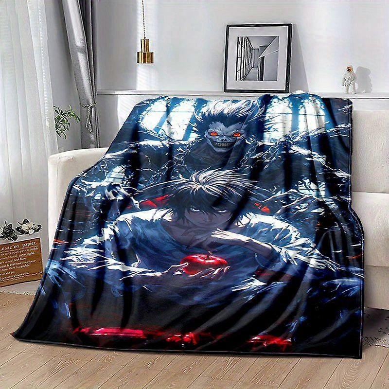 DEATH NOTE Demon Reaper Anime Gothic Blanket Soft Flannel Throw with Dark Blue & Red Accents