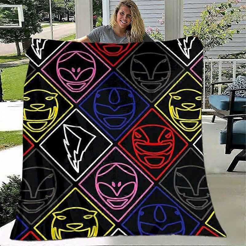 Power Rangers Neon Hero Pattern Soft Flannel Blanket Vibrant Mixed Colors