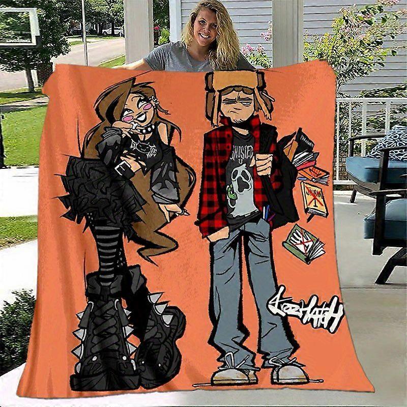 Gothic Punk Rock Cartoon Character Flannel Blanket Vibrant Mixed Colors