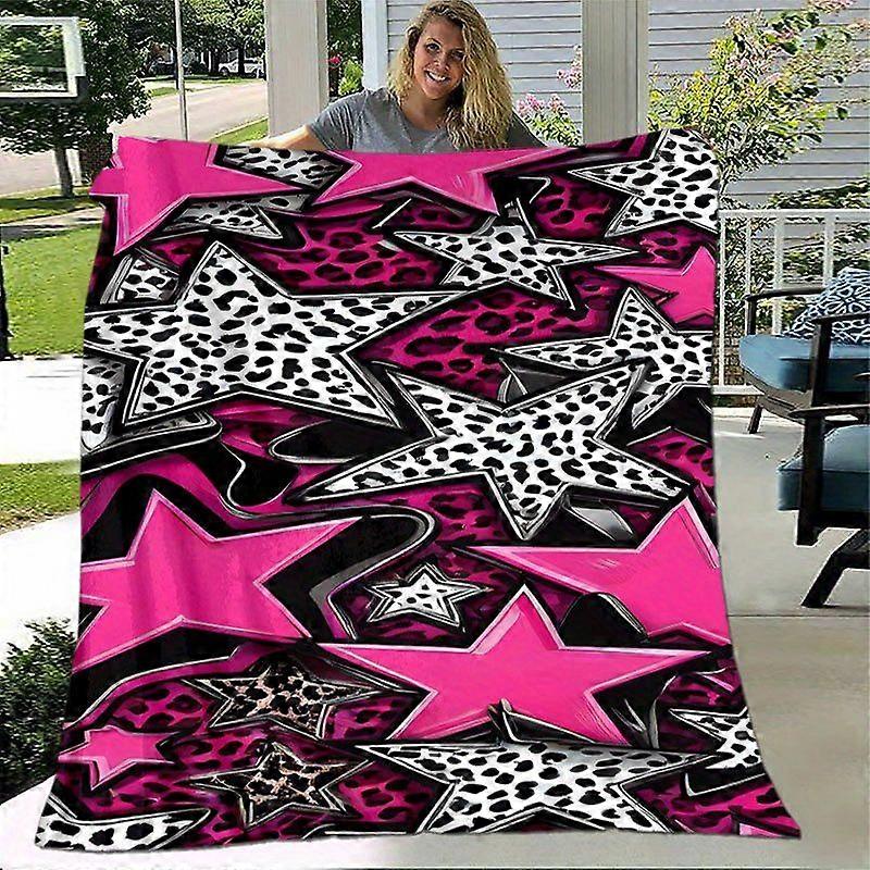 Bettyboo Flannel Throw Blanket Retro Leopard print & Pink Stars in Pink