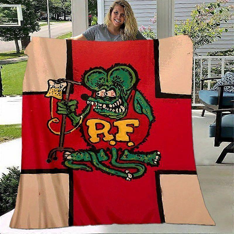 Rat Fink Retro Cartoon Flannel Blanket Vibrant Red & Beige All