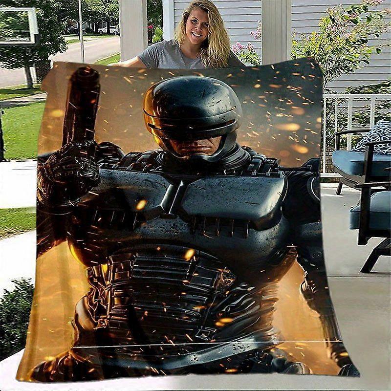 RoboCop Cyborg Futuristic Armor Blanket Soft Flannel Throw with Retro 80s/90s Action Movie Vibes