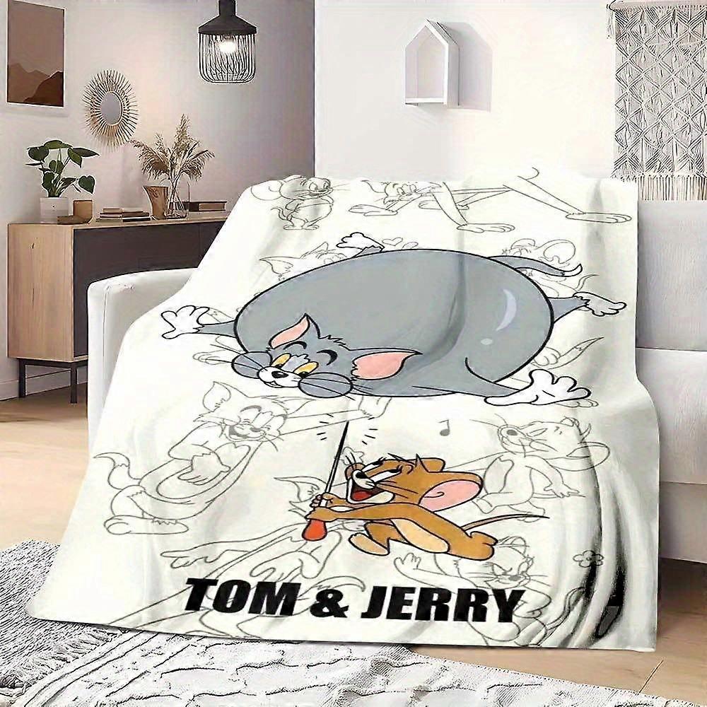 WB Tom & Jerry Flannel Blanket All Season Soft Throw with Iconic Cartoon Characters Cozy Nap Blanket for Sofa